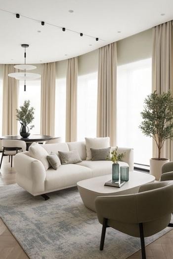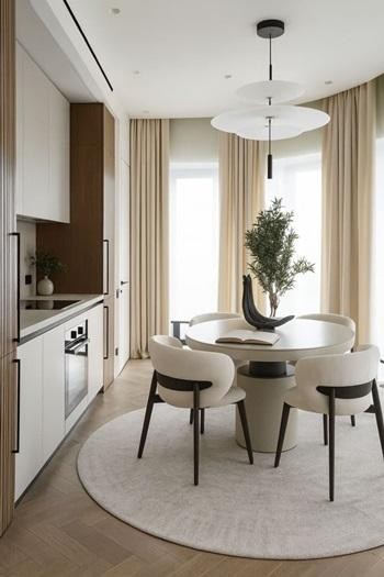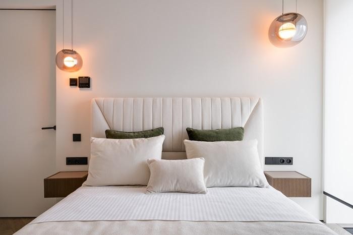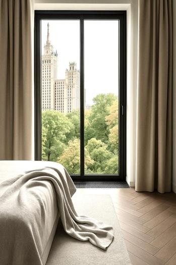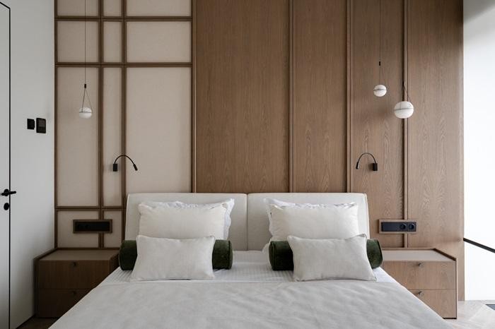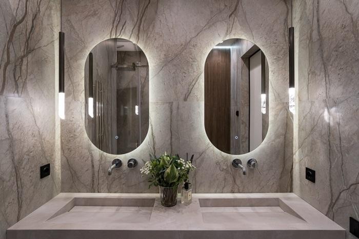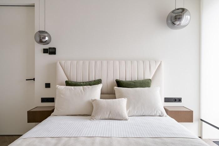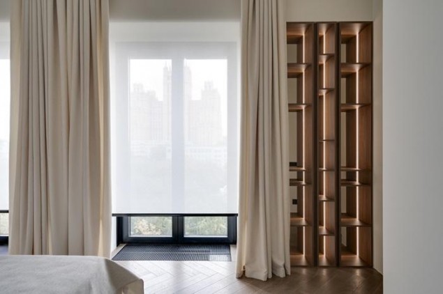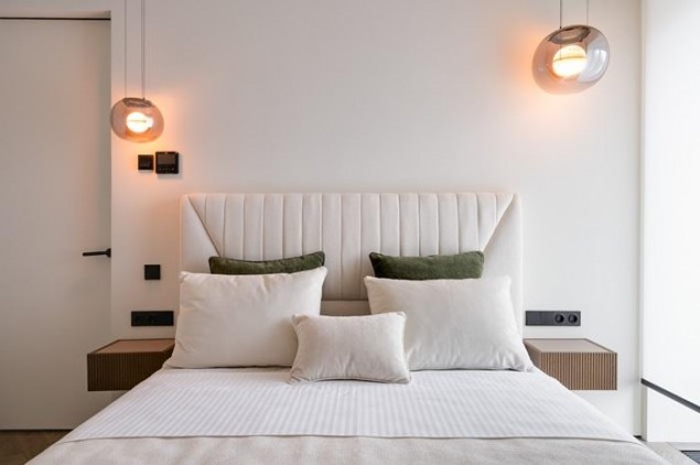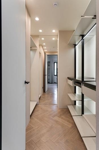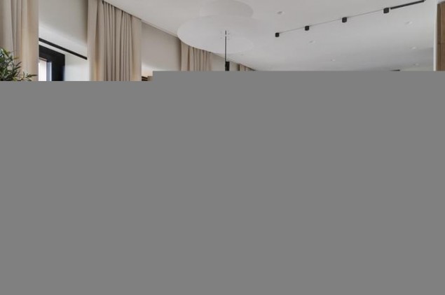 В отделке использованы премиальные материалы: шпон, широкоформатный керамогранит, инженерная доска, итальянская мебель, техника Miele
