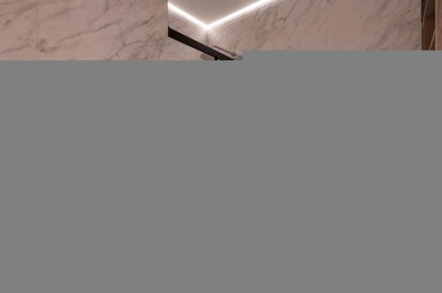 Входную дверь меняли, внешне как у застройщика, но по качеству неприступная. В отделке использованы премиальные материалы: шпон, мрамор, широкоформатный керамогранит. Двери высокие до потолка, дизайнерская мебель Ferre, Cavalli.
