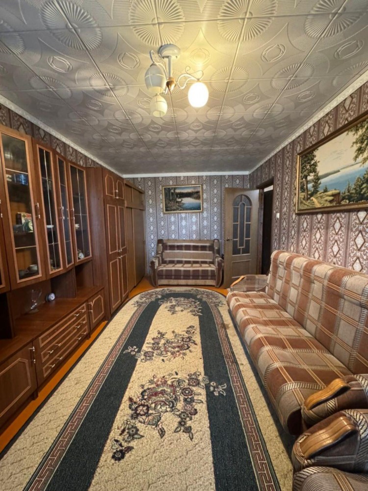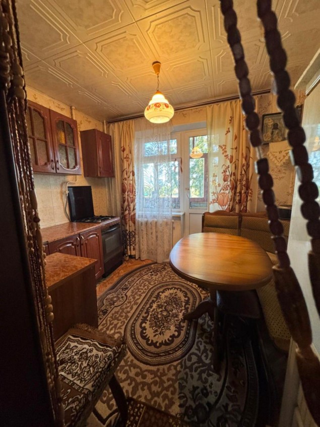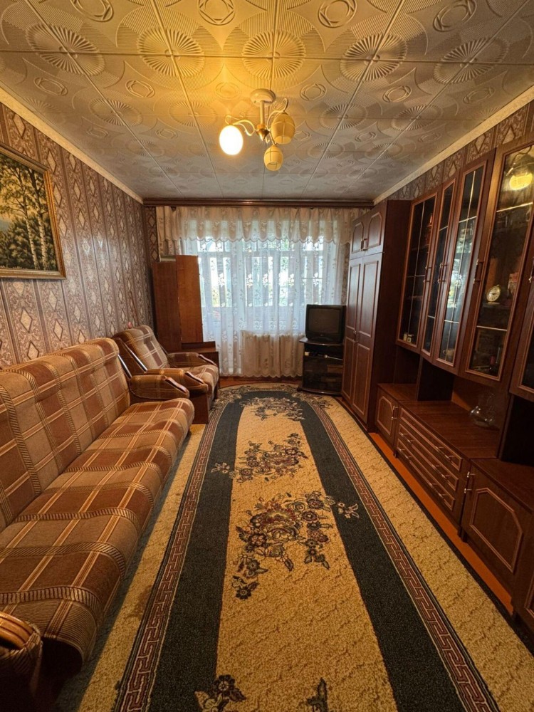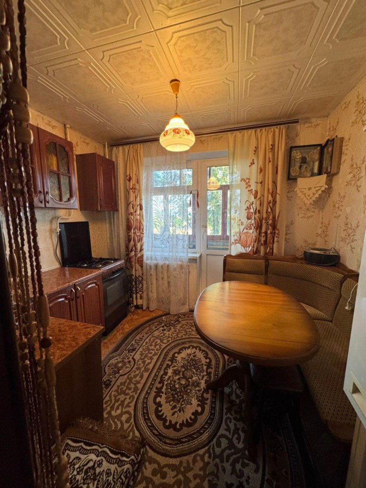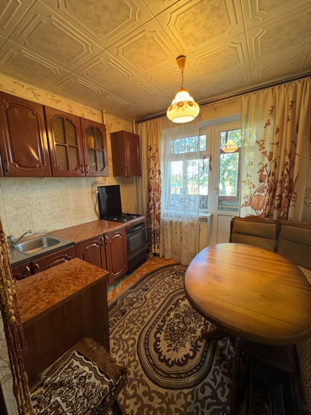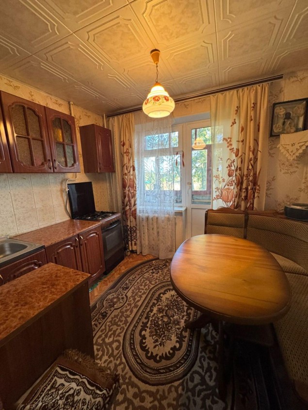 1 комнатная квартира. 1/3 панельного дома. Общая площадь 35.6м., Кухня 8м . Комната 18м . В хорошем состоянии . Полностью с ремонтом и мебелью. Балкон 6 метров. Кладовка. С/у в плитке. Поселок городского типа в котором имеется школа, детсад, сетевой магазин, дом культуры, фельдшерский пункт. . До города 10 минут на авто. Автобус каждый час