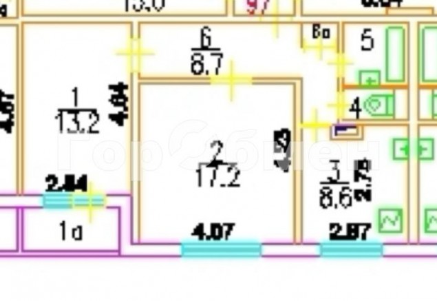 2/3 доли в двухкомнатной квартире. Квартира 52,3 кв.м. Кухня 8, кв.м. , комнаты 17 и 13 кв. м. Второй собственник молодой мужчина проживает в квартире со своей семьей в комнате поменьше. Большая комната закрыта.