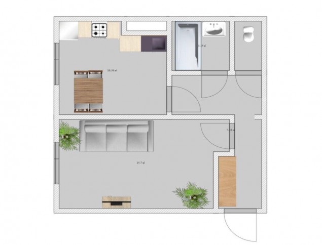 Общая площадь 31. 8 м² . Площадь кухни 10 м², площадь жилой комнаты 16 м².
