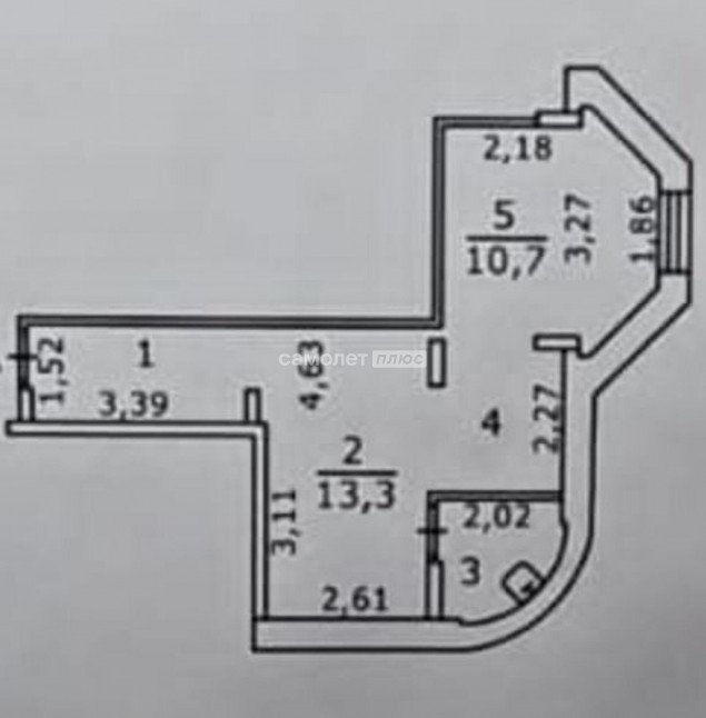 Гостиная, кухня, совмещенный санузел, комната, коридор.