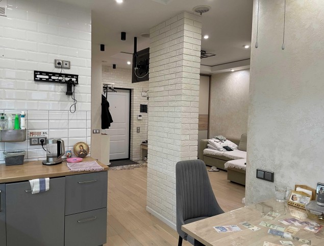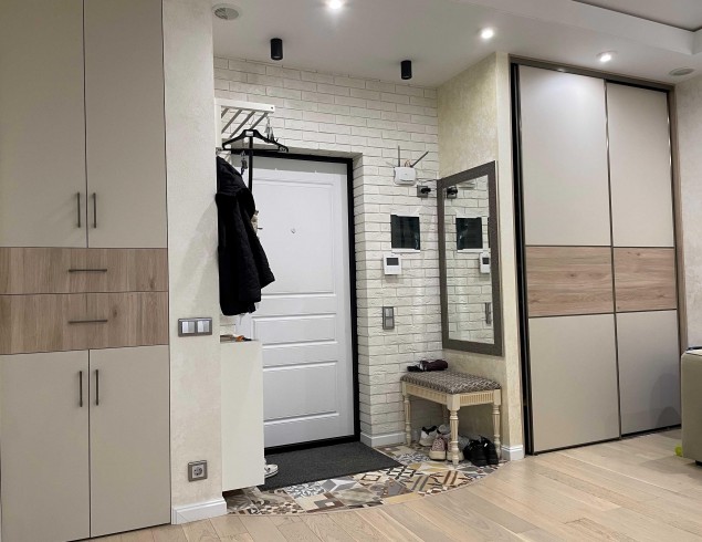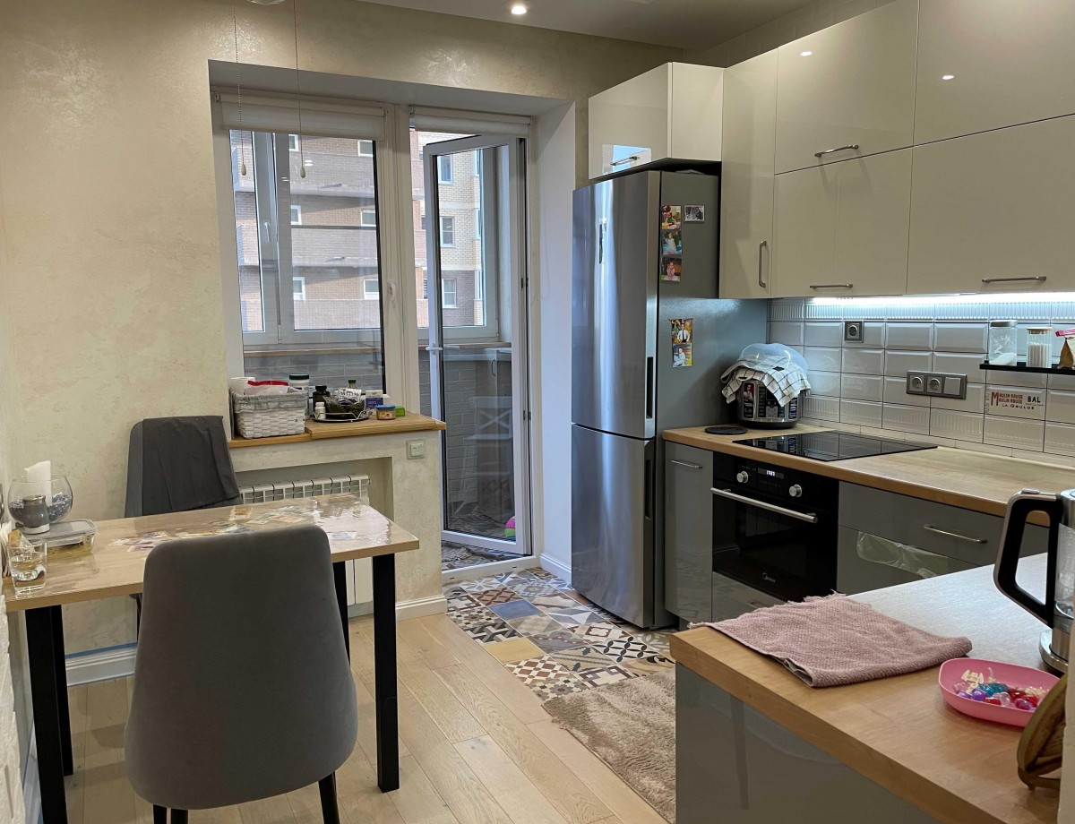 Продается однокомнатная квартира в ЖК Полет. Общая площадь 41.6 кв.м, имеется застекленная лоджия. В квартире выполнен современный дорогостоящий качественный ремонт. Квартира продается частично с мебелью. В стоимость входит кухонный гарнитур со встроенной техникой (посудомоечная машина, духовой шкаф с свч, варочная панель, вытяжка), два встроенных шкафа-купе в холле, шкаф и двуспальная кровать в спальне. Ремонт свежий. Квартира не требует никаких вложений. Выполнена грамотная перепланировка, позволившая создать большой холл. Квартира не угловая. имеется теплый пол, кондиционер. Полная стоимость в ДКП