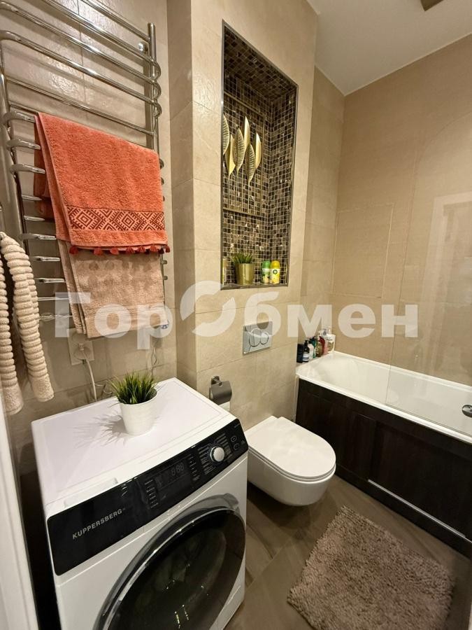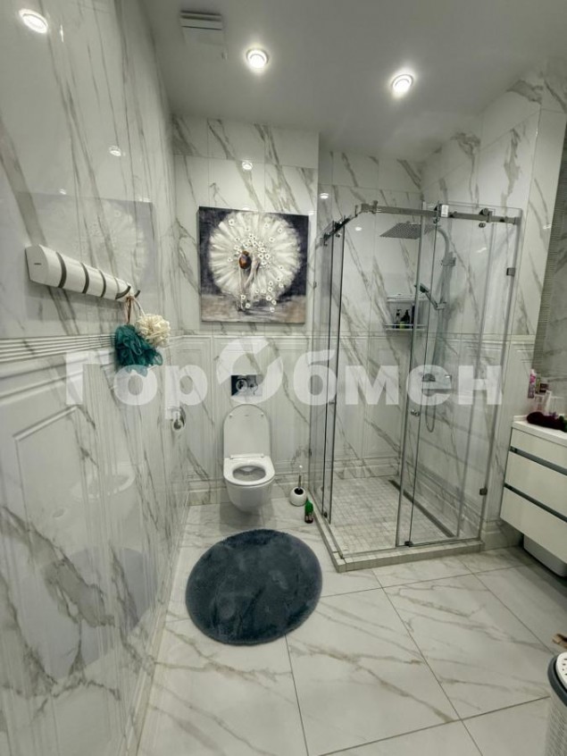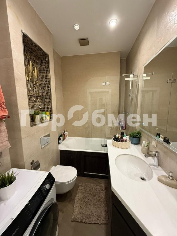 Кухня площадью оборудована современной техникой, включая холодильник и посудомоечную машину. Встроенные шкафы обеспечивают достаточное место для хранения. Два совмещенных санузла, выполнены в современном стиле.