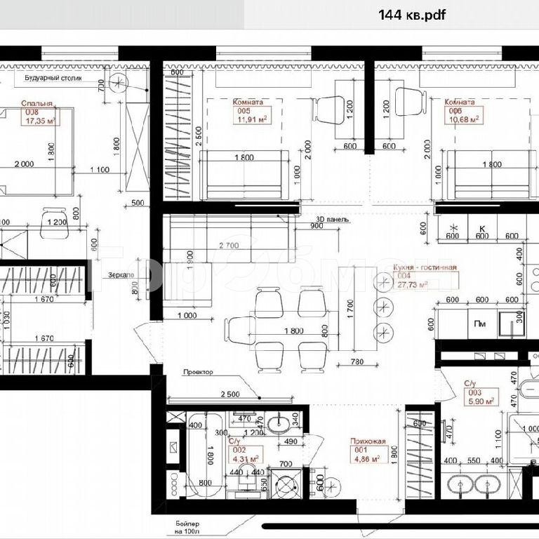 Квартира оборудована системой умный дом (шторы, свет, подсветка).