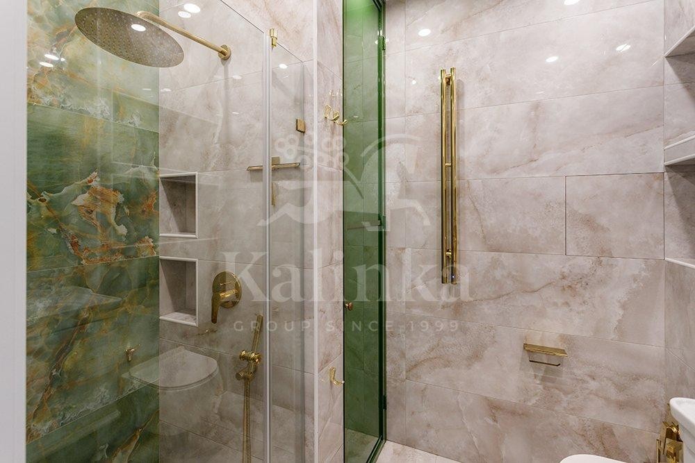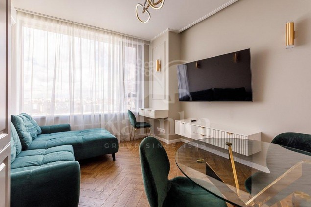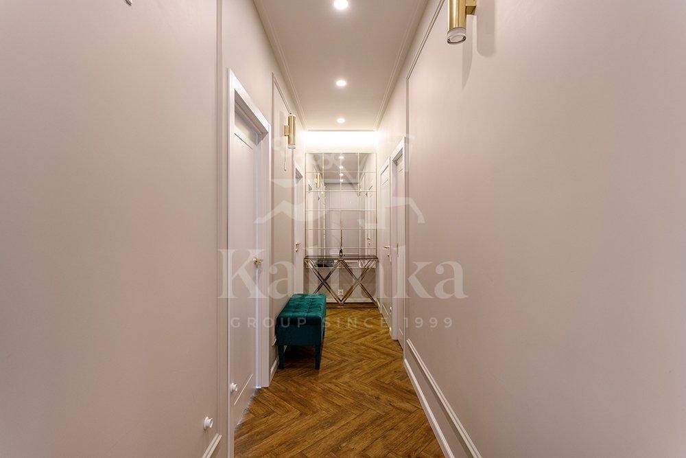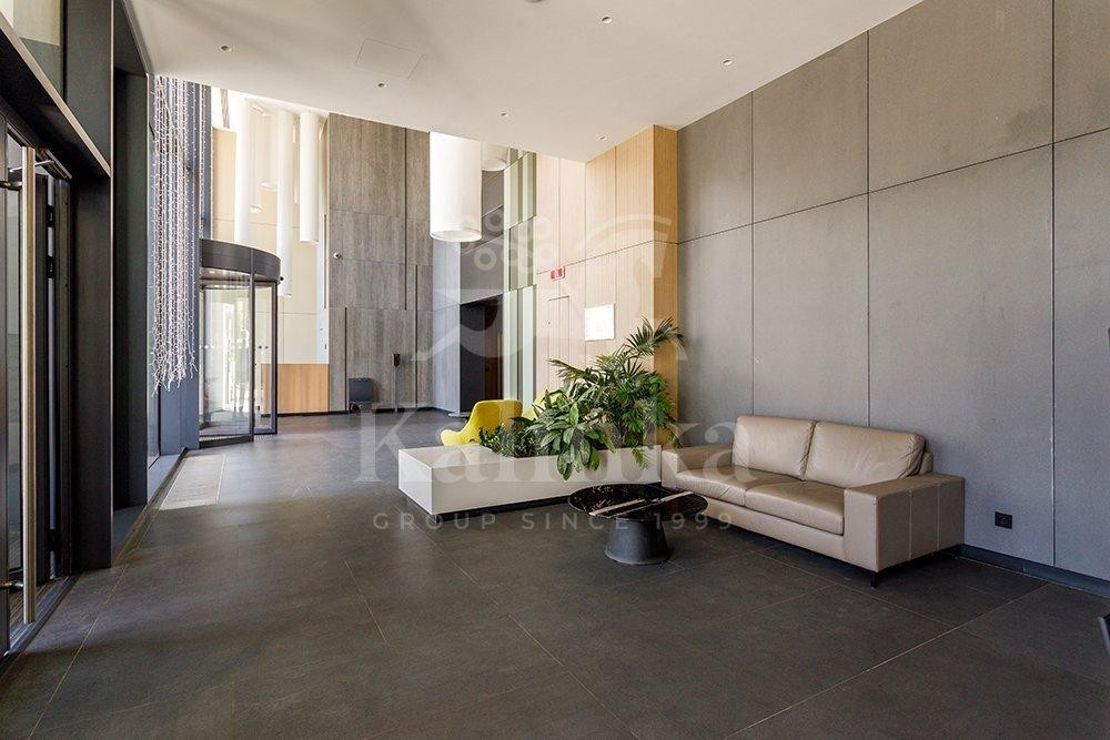 Общая площадь квартиры составляет 75,6 м². Она спроектирована с учетом всех современных требований к комфорту. Квартира полностью готова к проживанию, выполнен качественный дизайнерский ремонт, укомплектована мебелью и техникой. Шторы с электроприводом и дистанционным управлением. Много сценариев освещения.
