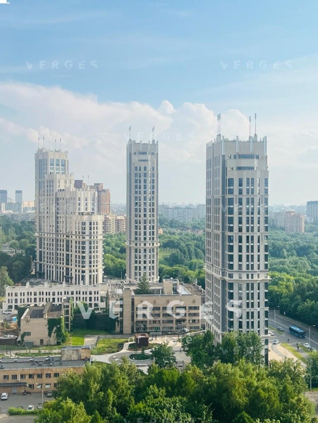 ЖК премиум класса Городские резиденции SPIRES Высокий 17 этаж. Продажа видовой квартиры без отделки с возможностью организации 1 спальни со своей гардеробной комнатой, кухни-гостиной, 2 санузлов, площадь 72 кв. м., из окон виды в сторону заказника Долина Реки Сетунь, на запад