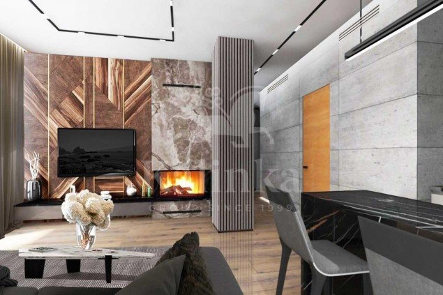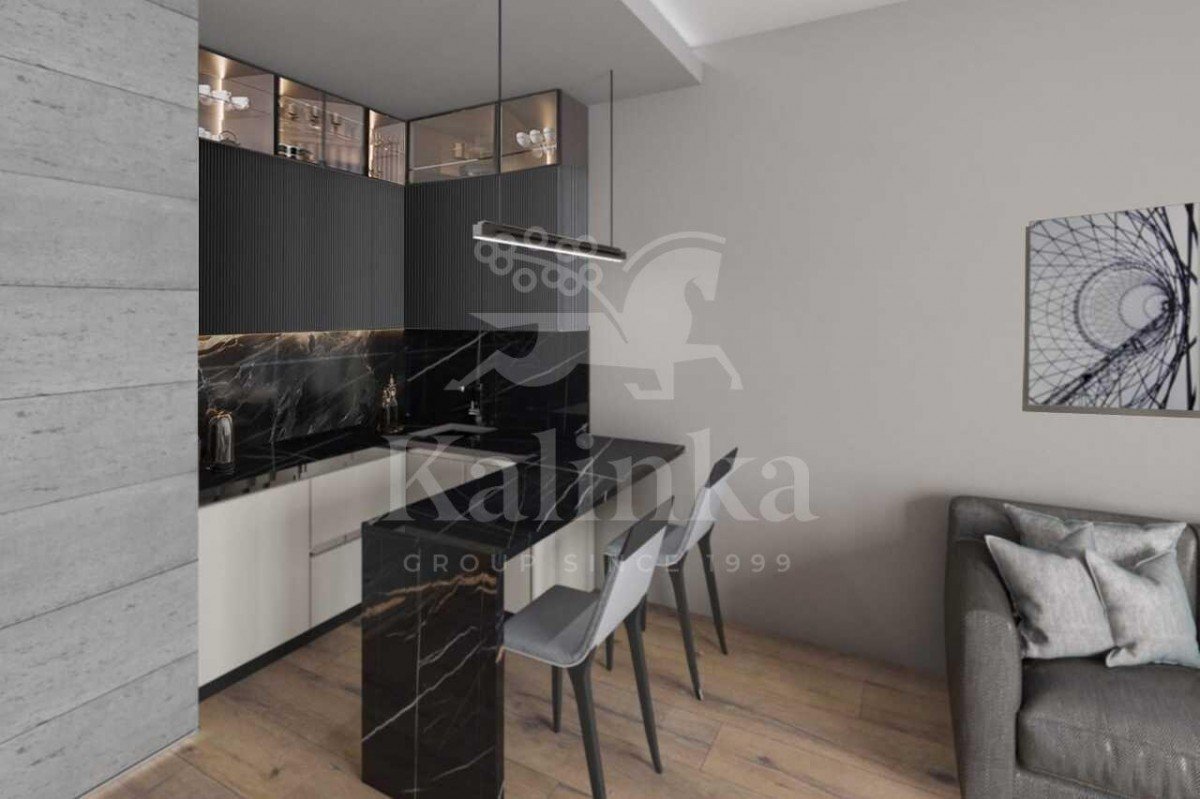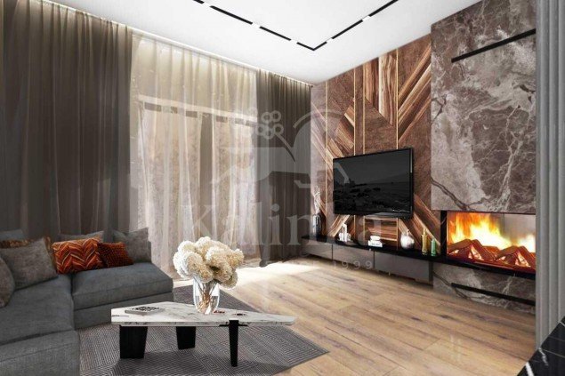 Гармоничное и функциональное планировочное решение включает прихожую, гостиную, кухню, спальню, ванную комнату, кладовую.