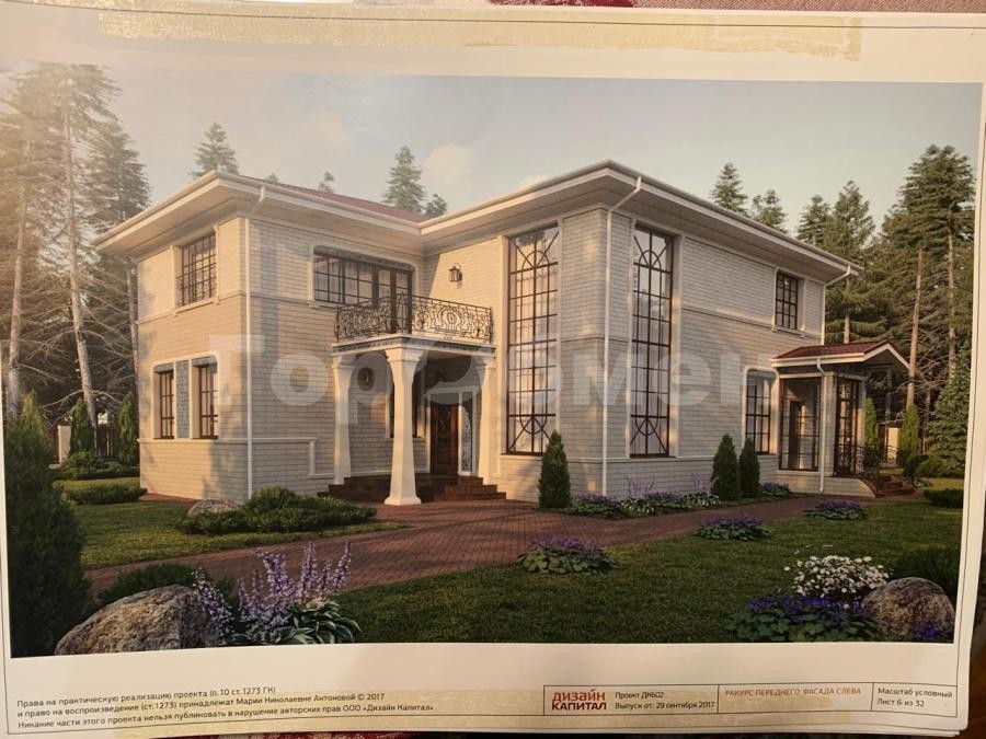 • Полный пакет документов: Категория «земли населённых пунктов», ИЖС. Разрешение на строительство действует до 2026 года (с возможностью продления). Есть полный архитектурный проект с ландшафтным дизайном.
