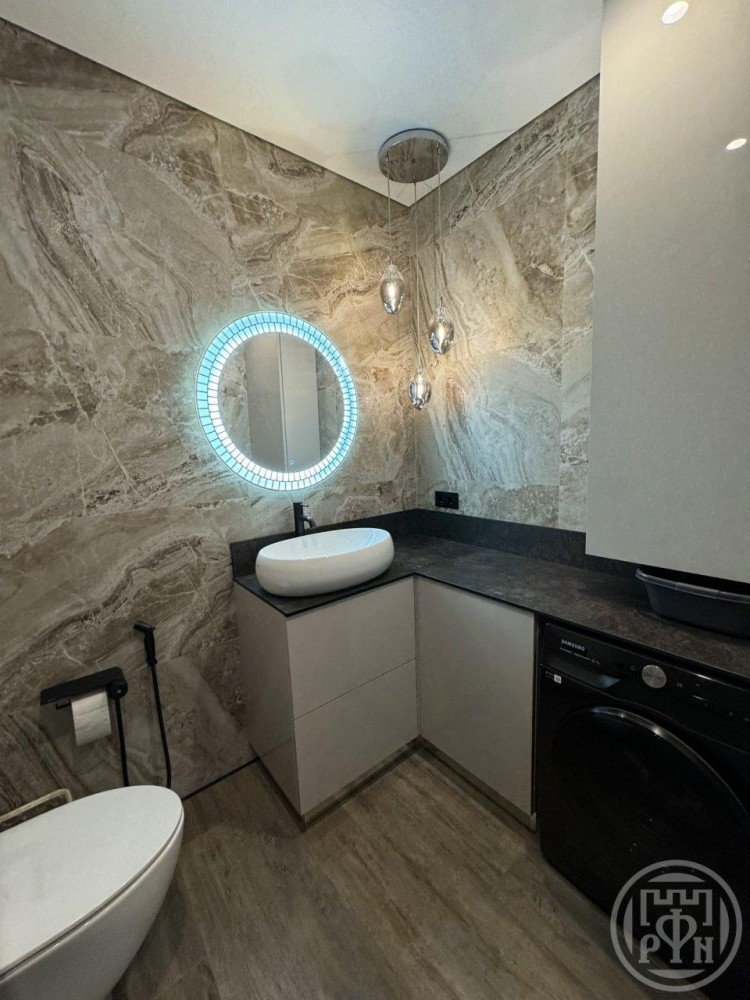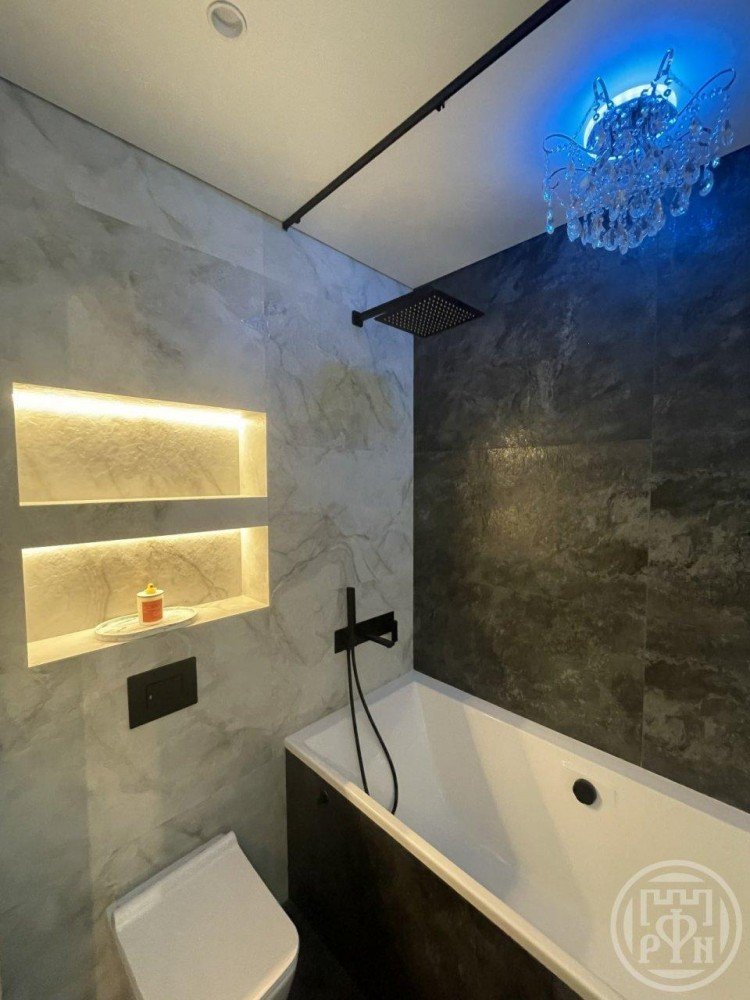 Два санузла, в которых установлена дорогая качественная сантехника, душ скрытого монтажа и пол с подогревом.