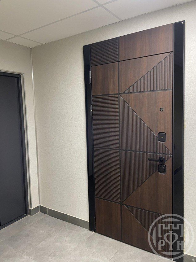 Высокие двери выполнены на заказ, полотна с антивандальным покрытием и итальянской фурнитурой.