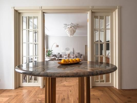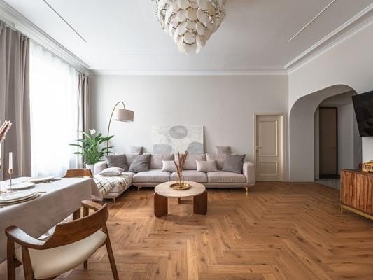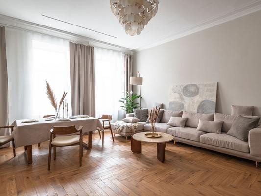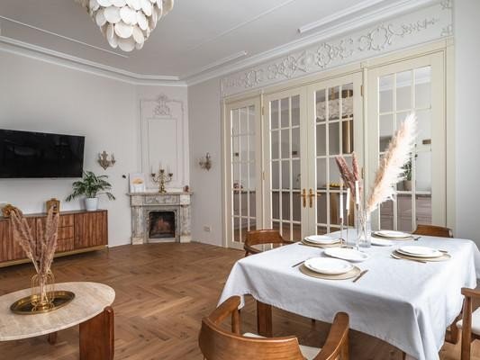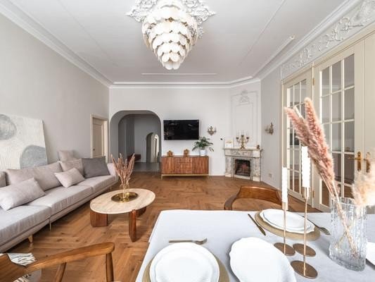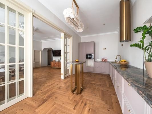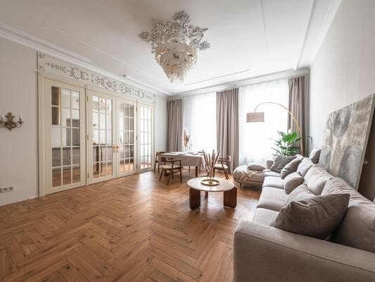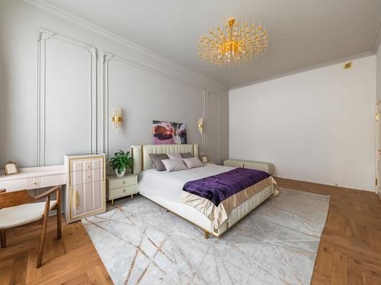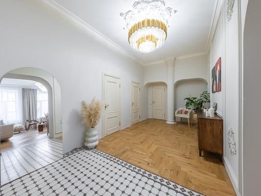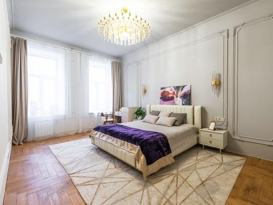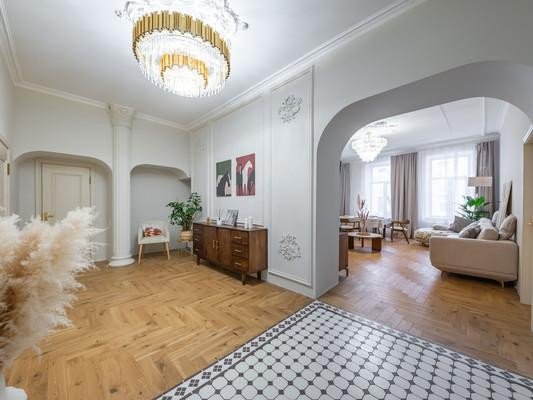 #8818816# Продается уникальная квартира в историческом центре Санкт-Петербурга на улице Зверинской! О доме: Дом, построенный в 1899 году по проекту техника Мульханова Павла Михайловича в стиле эклектика, является настоящим архитектурным шедевром. Здание использовалось как доходный. Использовавшийся как доходный дом, он сохраняет свою элегантность и статус благодаря парадному входу, а также предлагает удобство второго входа на охраняемую закрытую парковку со двора. О квартире: Просторная квартира площадью 134,2 кв. м предлагает простор и комфорт. Профессионально выполненный ремонт по дизайн-проекту включает шумоизоляцию, полную замену проводки, теплый пол в зоне прихожей и ванной. На полах уложена паркетная доска. В квартире выделены мини-постирочная зона и отдельная гардеробная. Кухня соединена с гостиной роскошной дверью с высокими створками, а также имеются две раздельные комнаты и совмещенный санузел. Высокие потолки 3,4м и двусторонняя планировка обеспечивают свет и уют. Новому владельцу остается вся мебель и техника, включая комоды из массива дуба, стол и стулья из новозеландской сосны, диван, столешницу из бразильского кварцита и действующий исторический камин из голубого карельского мрамора Две великолепные люстры из испанского мрамора украшают гостиную и кухню. Кухня оборудована ящиками с доводчиками, посудомойкой и электроплитой. Сохранена историческая лепнина, а в ванной комнате панно из венецианской штукатурки. Инфраструктура: Расположение квартиры — это настоящая находка! Всего 10 минут пешком до Петропавловской крепости, 15 минут до Стрелки Васильевского острова и Невы. В радиусе 2,5 км находятся Государственный Эрмитаж и Меньшиковский дворец. Рядом Ленинградский зоопарк, Планетарий, Александровский парк и лучшие университеты. Вся необходимая инфраструктура в непосредственной близости, а станции метро Горьковская, Спортивная и Чкаловская всего в 10 минутах ходьбы. Не упустите шанс стать владельцем этой