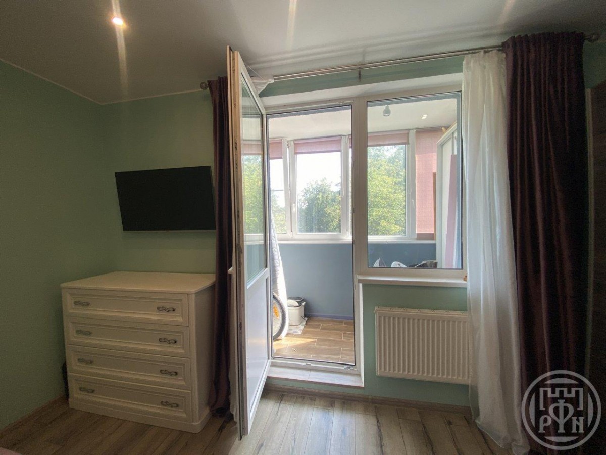 Окна квартиры выходят на две стороны. Окна комнат выходят в сторону парка, окна кухни в сторону озера.
