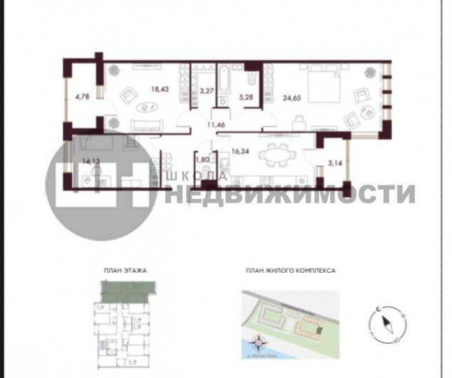 На территории комплекса есть спортивные и детские площадки, ландшафтное озеленение и собственная зона променада.