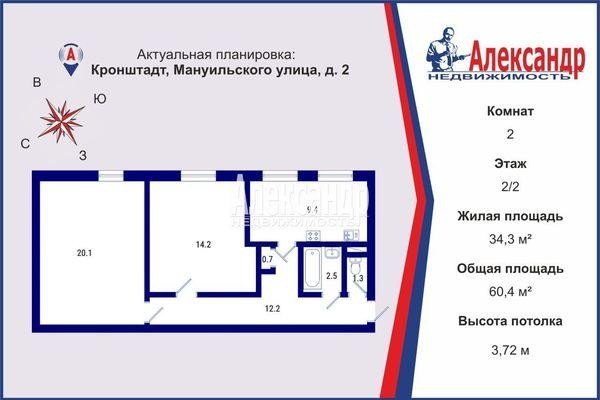 Продажа двух-комнатной квартире в Кронштадтском районе СПб. Площадь квартиры: 60.4 м2, жилая площадь: 34.3 м2, площадь кухни: 9.4 м2, 2/2 этаж. Цена 8 800 тыс. руб. Описание, информация о продавце.