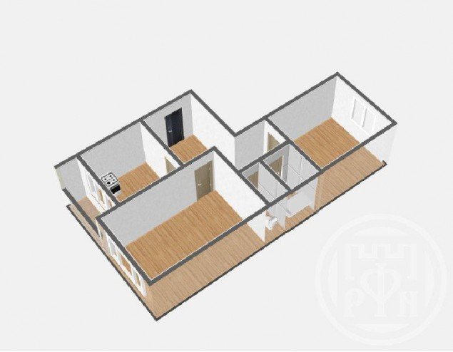S общая – 53,7 кв. м; S жилая – 29,1 кв. м; комнаты (17,3 + 11,8) изолированные; S кухни – 8,8 кв. м; сан. узел раздельный; высота потолков-2,5 м, застекленная лоджия.