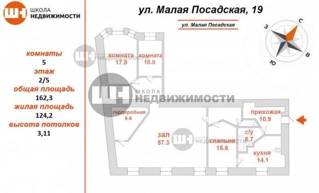 Продажа пяти-комнатной квартире в Петроградском районе СПб. Площадь квартиры: 162.3 м2, жилая площадь: 124.2 м2, площадь кухни: 14.1 м2, 2/5 этаж. Цена 34 240 тыс. руб. Описание, информация о продавце.