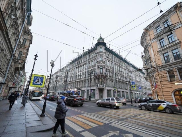 110712121 ...Пятиэтажный доходный дом на подвалах по Невскому пр. и Дегтярной ул. и трехэтажные каменные флигели по задней границе двора вгг. построил арх. А. С. Хренов, придавший угловой части здания характерный для своего творчества вид с круглым эркером, завершенным декоративной башней.
