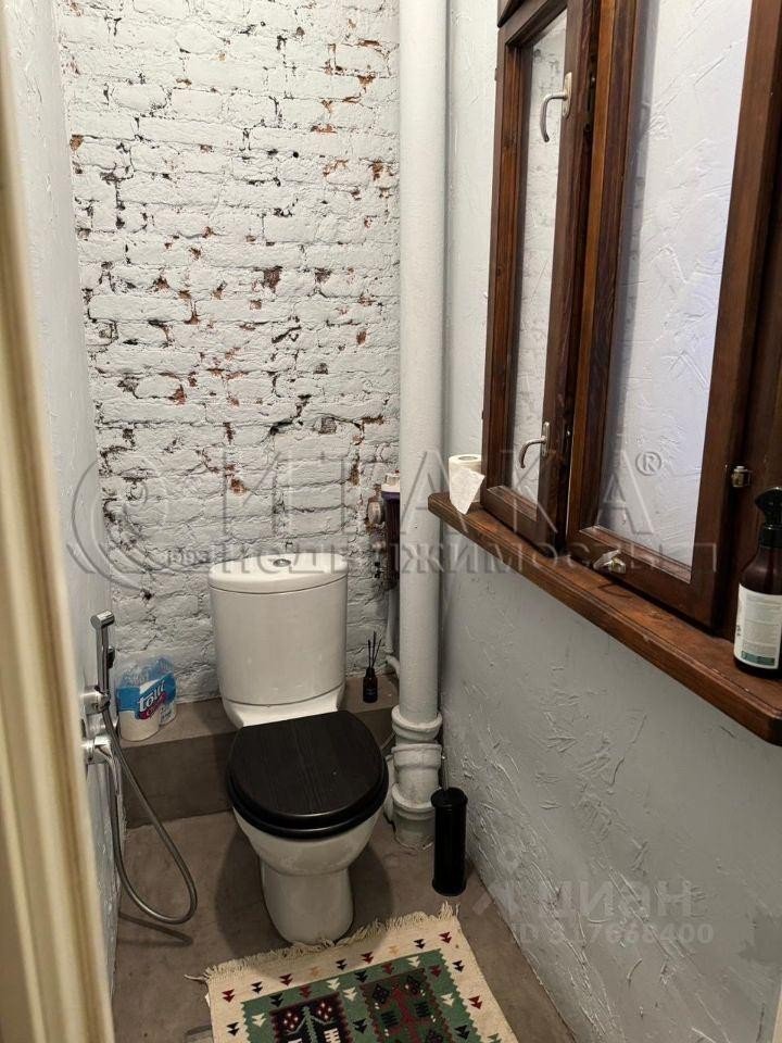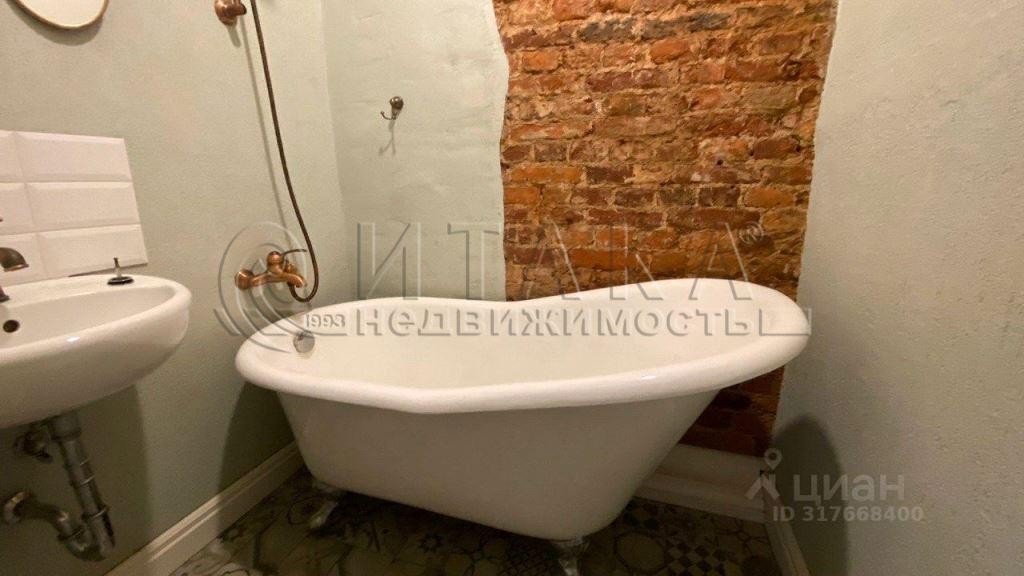 — винтажная ванна с латунной сантехникой и кирпичной кладкой, туалет отдельно