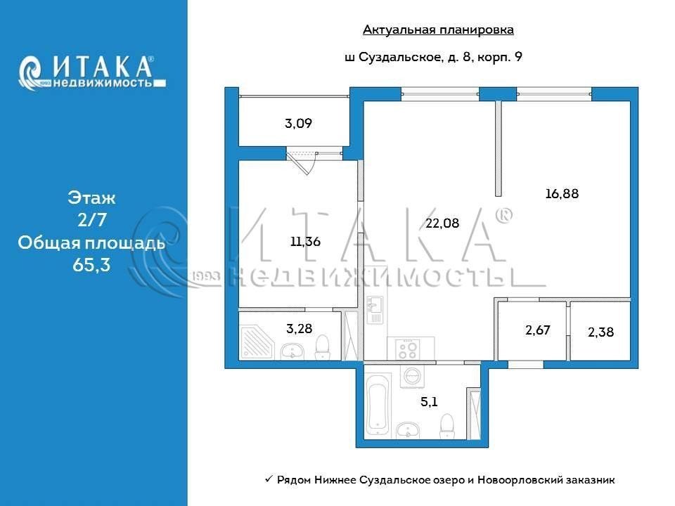 Продажа одно-комнатной квартире в Приморском районе СПб. Площадь квартиры: 65.3 м2, площадь кухни: 22.08 м2, 2/7 этаж. Цена 16 470 тыс. руб. Описание, информация о продавце.