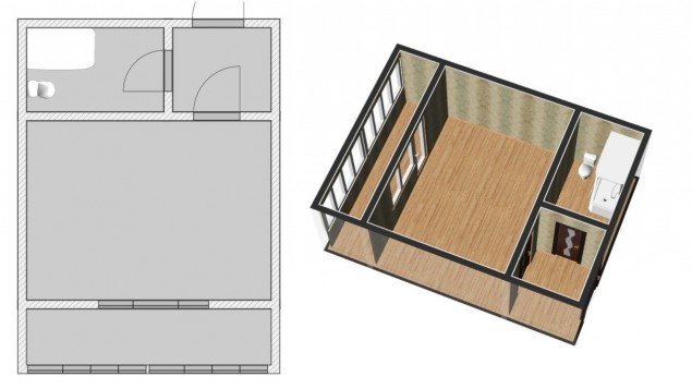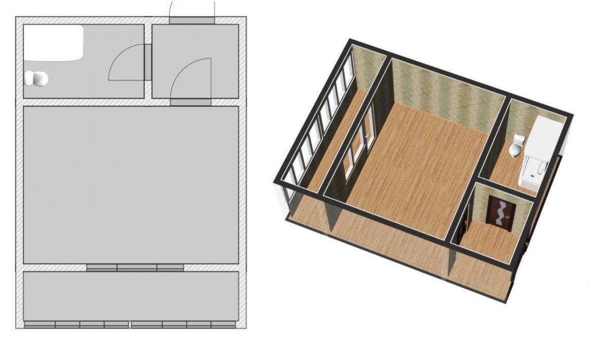 Общая площадь квартиры — 24,8 м², жилая площадь - 18 м².