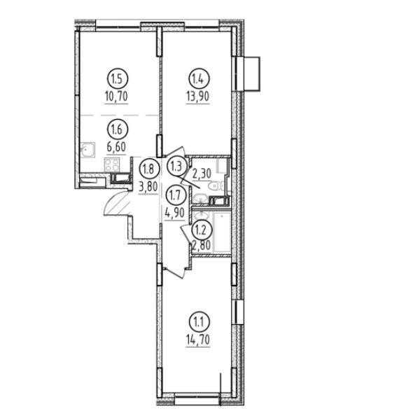 №340306 Продаётся 3Е квартира — 59,7 м², 7-й этаж из 10, чистовой ремонт от застройщика (без мебели).