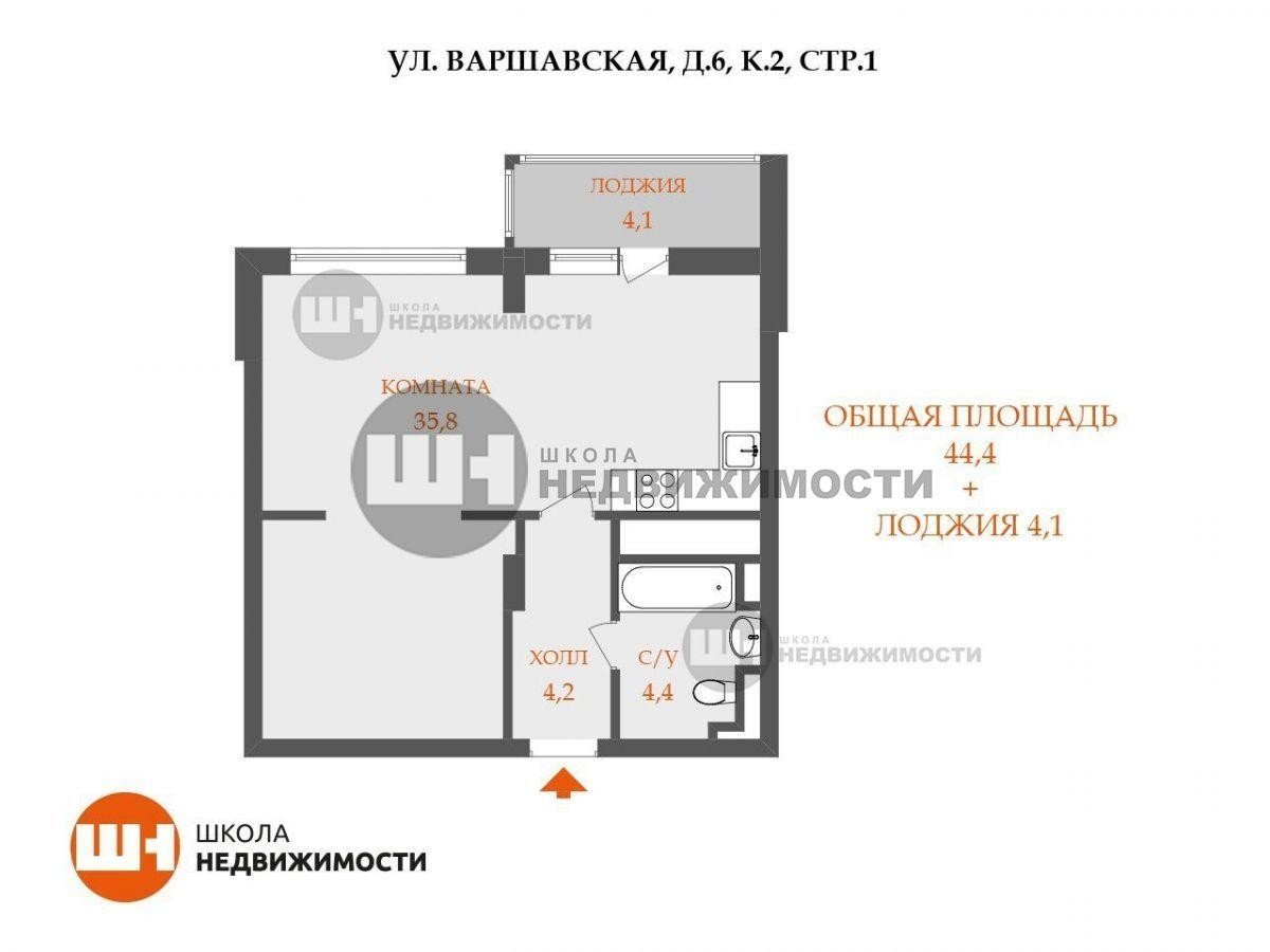 Общая площадь: 44,4 м²