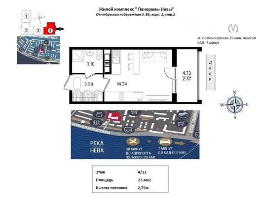 Продажа одно-комнатной квартире в Невском районе СПб. Площадь квартиры: 23.4 м2, жилая площадь: 14.4 м2, площадь кухни: 9 м2, 4/11 этаж. Цена 5 490 тыс. руб. Описание, информация о продавце.
