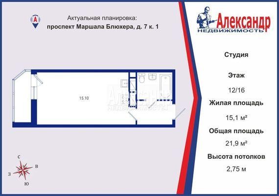 Продажа одно-комнатной квартире в Калининском районе СПб. Площадь квартиры: 21.9 м2, жилая площадь: 15.1 м2, площадь кухни: 6.8 м2, 12/16 этаж. Цена 6 750 тыс. руб. Описание, информация о продавце.