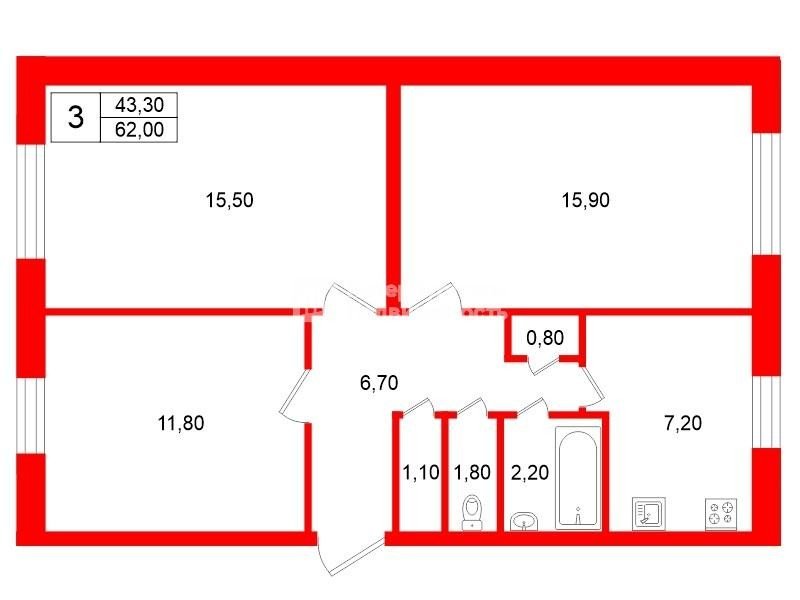 Oбщая плoщадь 62м2