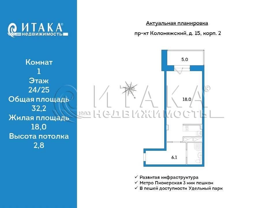 Продажа одно-комнатной квартире в Приморском районе СПб. Площадь квартиры: 32.2 м2, жилая площадь: 18 м2, площадь кухни: 6 м2, 24/25 этаж. Цена 9 200 тыс. руб. Описание, информация о продавце.