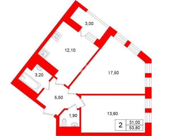Продажа двух-комнатной квартире в Приморском районе СПб. Площадь квартиры: 53.8 м2, жилая площадь: 31.1 м2, площадь кухни: 12.1 м2, 4/13 этаж. Цена 15 500 тыс. руб. Описание, информация о продавце.