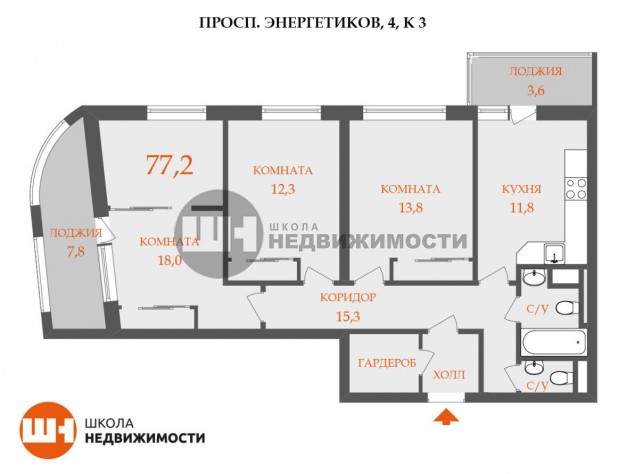 Продажа трех-комнатной квартире в Красногвардейском районе СПб. Площадь квартиры: 77.2 м2, жилая площадь: 44.1 м2, площадь кухни: 12 м2, 3/21 этаж. Цена 24 890 тыс. руб. Описание, информация о продавце.