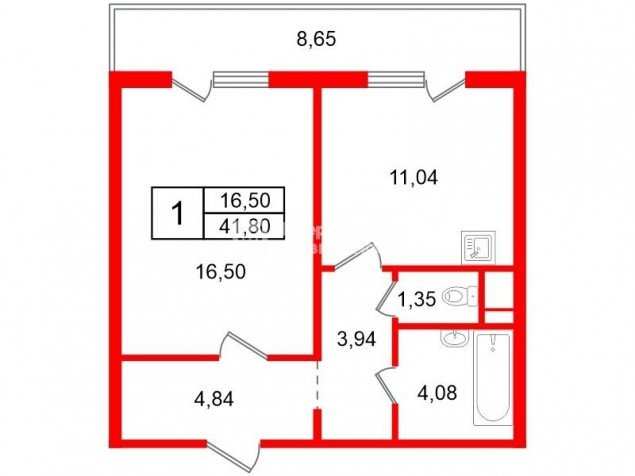 - комната (16.5 квм) и кухня (11.4 квм) правильной формы.