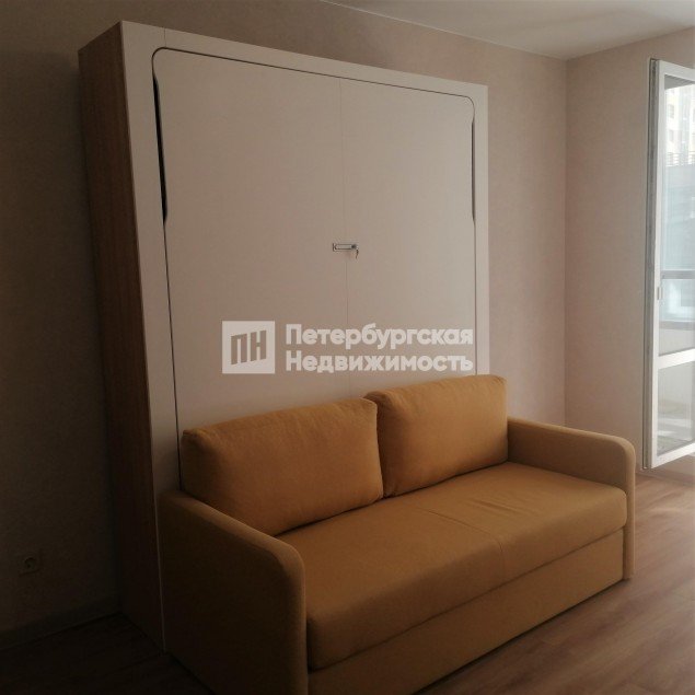 В комнате новый Шкаф-кровать Wall Bed Life Time Ice с диваном от известной мебельной компании.