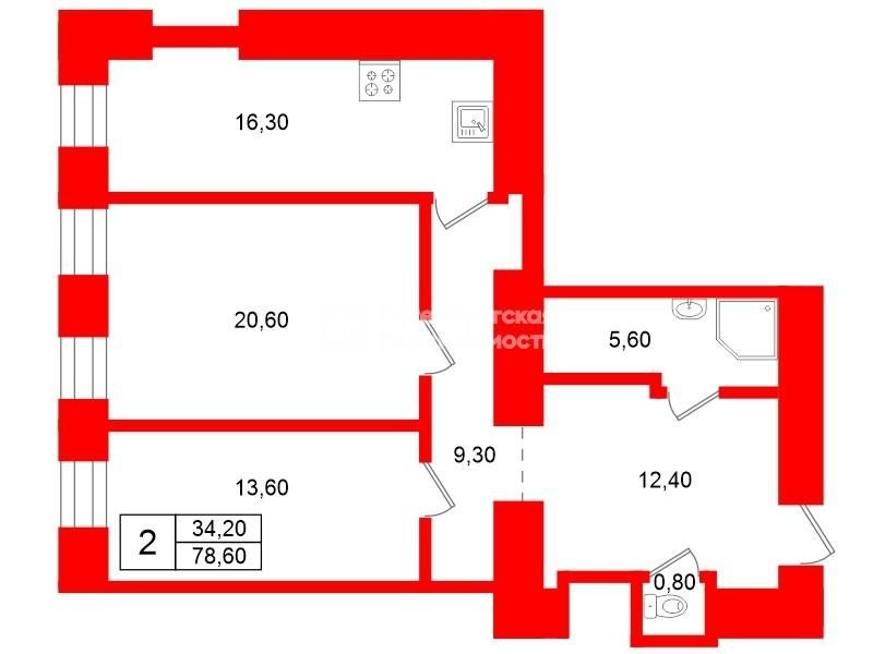 Продажа двух-комнатной квартире в Василеостровском районе СПб. Площадь квартиры: 78.6 м2, жилая площадь: 34.2 м2, площадь кухни: 16.3 м2, 5/6 этаж. Цена 16 000 тыс. руб. Описание, информация о продавце.