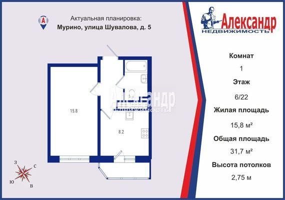 Продажа одно-комнатной квартире во Всеволожском районе. Площадь квартиры: 31.7 м2, жилая площадь: 15.8 м2, площадь кухни: 8.2 м2, 6/22 этаж. Цена 5 900 тыс. руб. Описание, информация о продавце.