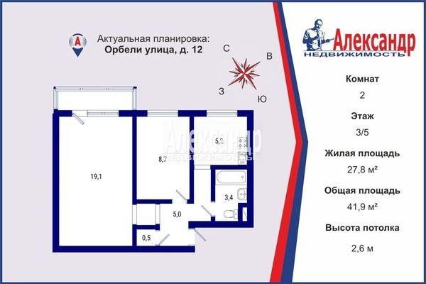 Продажа двух-комнатной квартире в Выборгском районе СПб. Площадь квартиры: 41.9 м2, жилая площадь: 27.8 м2, площадь кухни: 5.2 м2, 3/5 этаж. Цена 8 800 тыс. руб. Описание, информация о продавце.