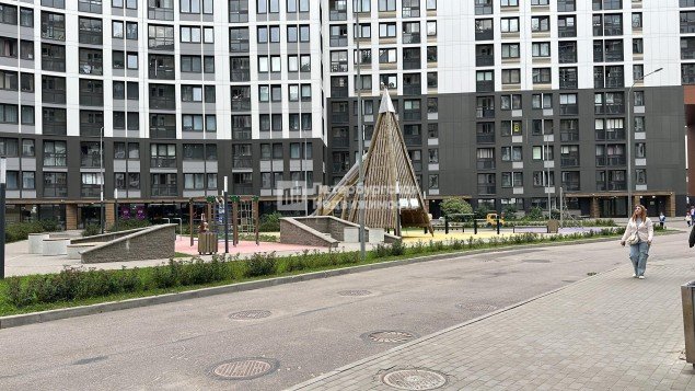 Двор без машин, благоустроенные детские и спортивные площадки.