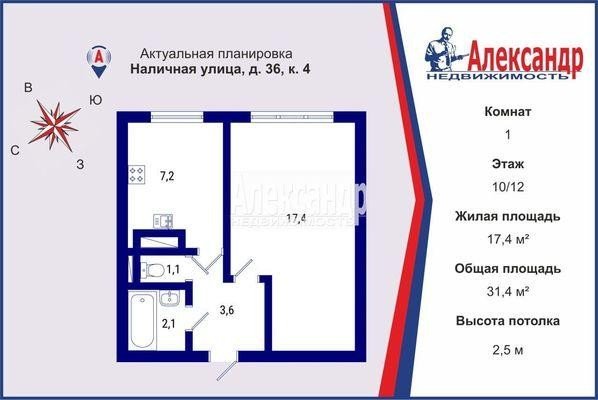 Продажа одно-комнатной квартире в Василеостровском районе СПб. Площадь квартиры: 31.4 м2, жилая площадь: 17.4 м2, площадь кухни: 7.2 м2, 10/12 этаж. Цена 8 600 тыс. руб. Описание, информация о продавце.