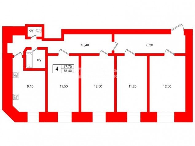 Продажа черырёх-комнатной квартире в Петроградском районе СПб. Площадь квартиры: 78.4 м2, жилая площадь: 47.7 м2, площадь кухни: 9.1 м2, 3/6 этаж. Цена 17 800 тыс. руб. Описание, информация о продавце.
