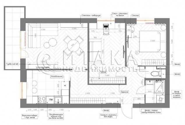 На полах в комнатах, кухне и балконе - кварц виниловое покрытие - долговечное, влагостойкое и прочное.