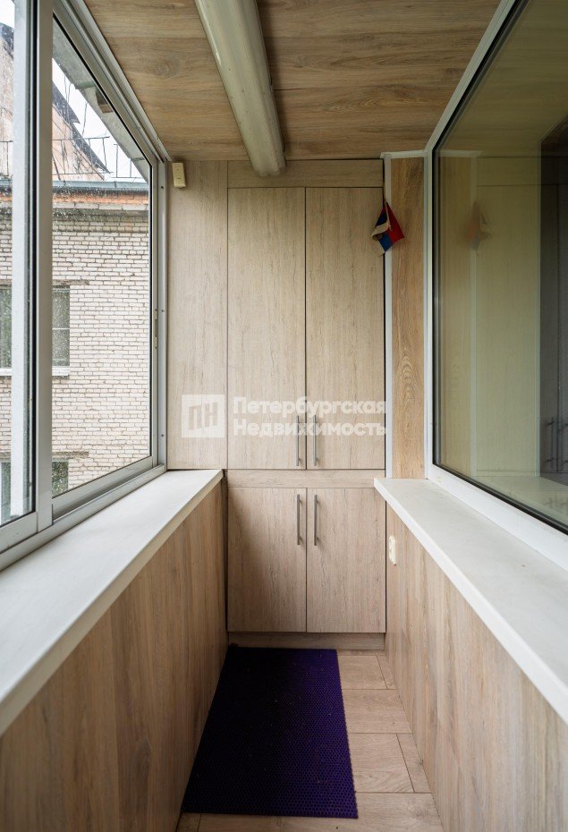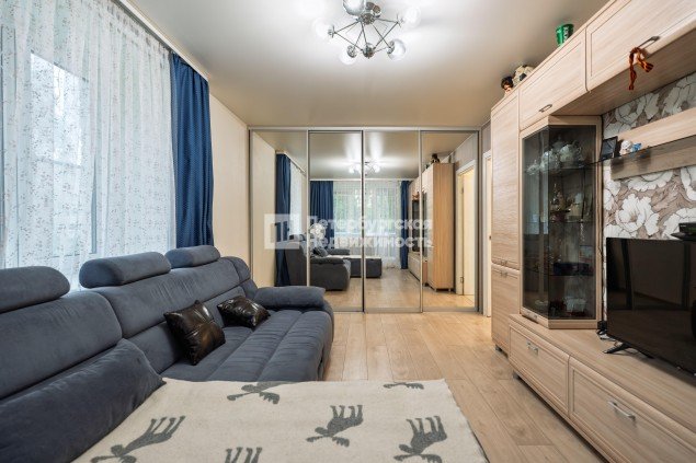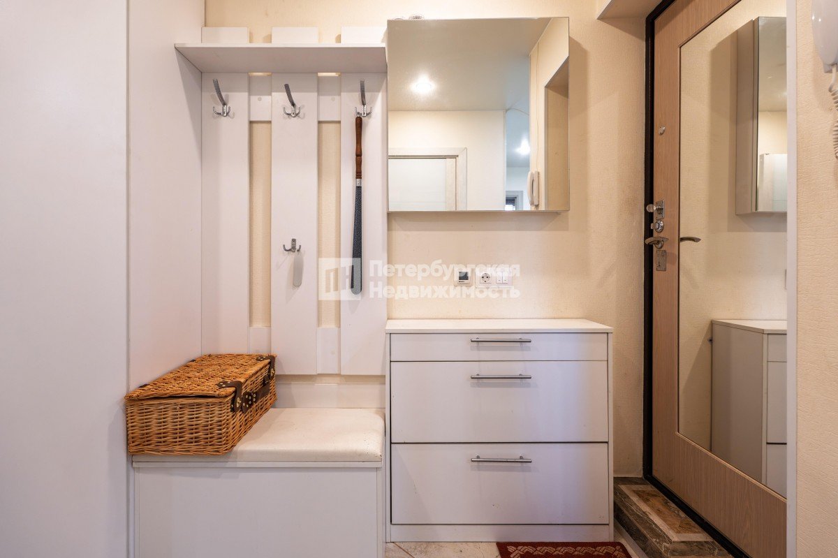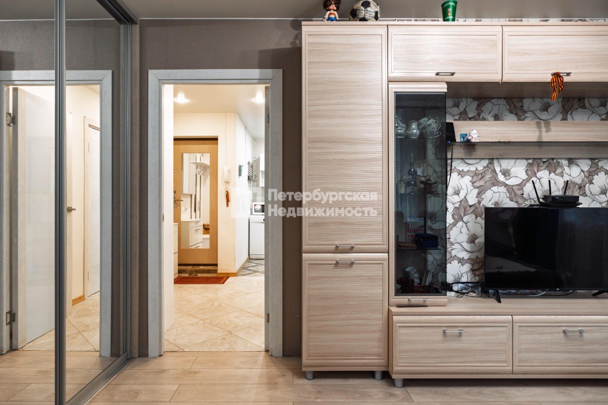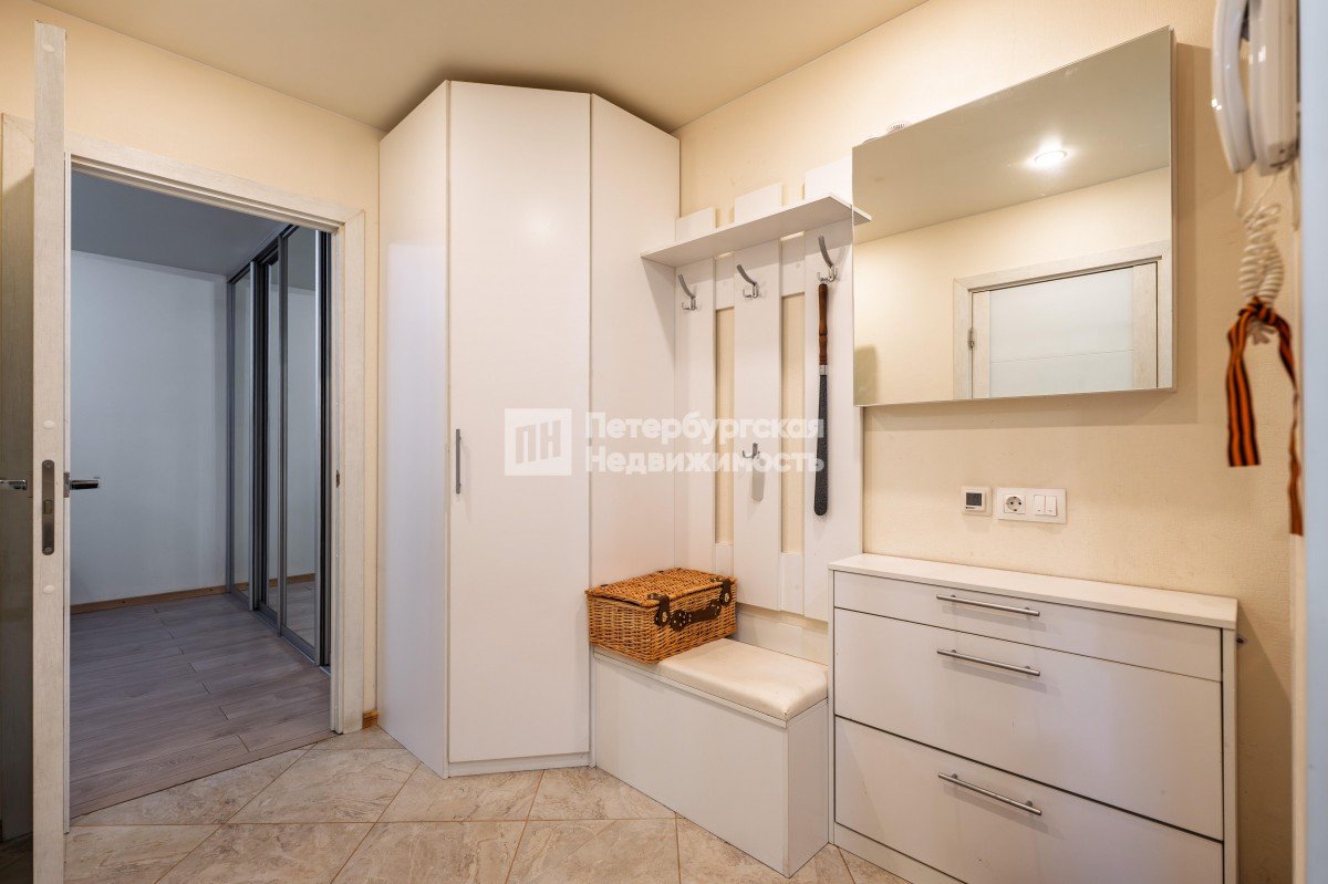 Большая комната оснащена вместительной гардеробной (во всю стену шкаф глубиной 80 см с зеркальными дверями-купе).