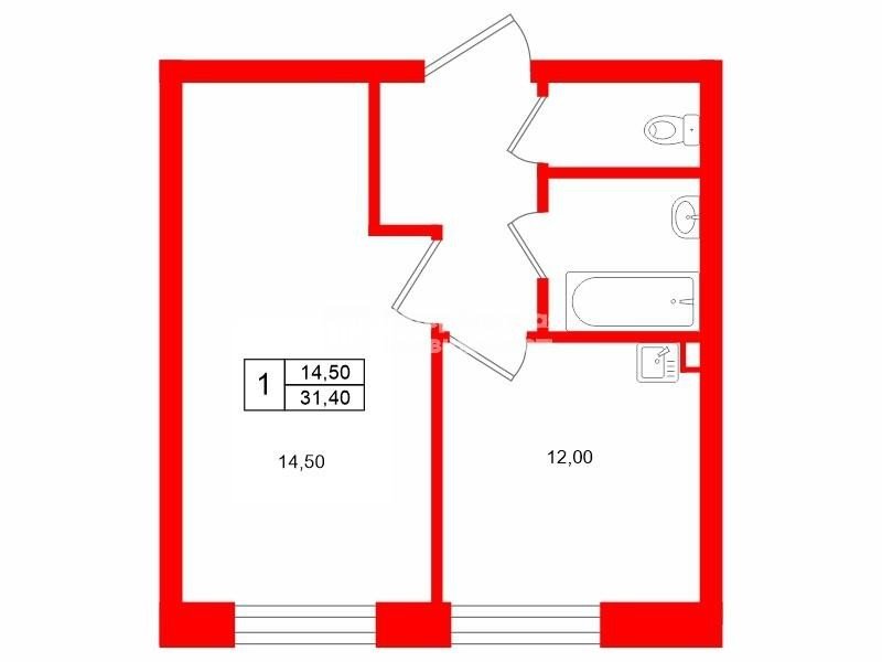 Планировка: Классическая 1-комнатная, площадь 31.4 кв.м. – оптимально для одного человека или пары.