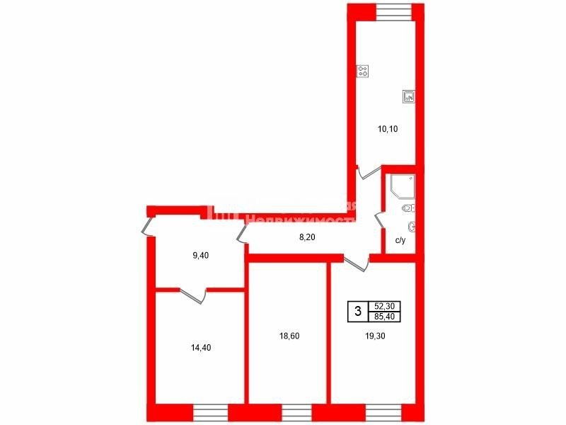 Продажа трех-комнатной квартире в Московском районе СПб. Площадь квартиры: 85.4 м2, жилая площадь: 52.3 м2, площадь кухни: 10.1 м2, 4/6 этаж. Цена 22 800 тыс. руб. Описание, информация о продавце.