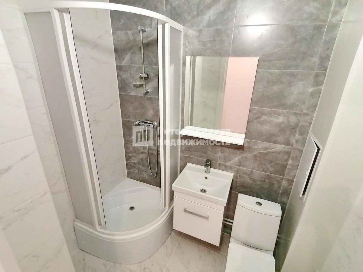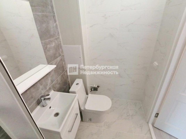 Отделка Nord Line с керамической плиткой Kerama Marazzi, системой «теплый пол», сантехникой европейских брендов. В прихожей и ванной ниши под шкаф.