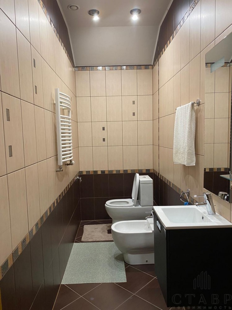 В основном доме 4 санузла, 4 спальни, гардеробная, есть постирочная и гладильная комнаты.