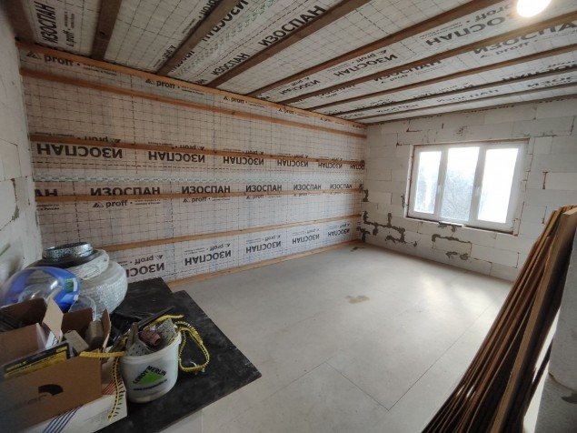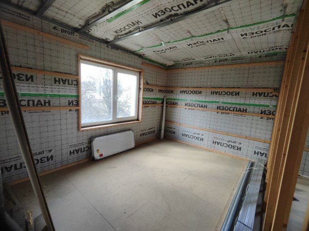 выполнен тёплый контур (стены, утепление, окна, входная дверь)