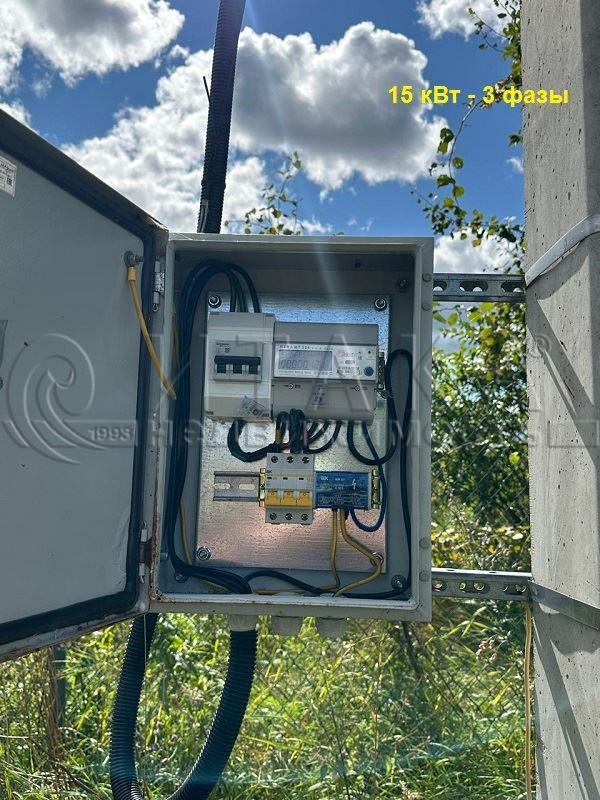 • Электричество – 15 кВт (3 фазы). На опоре установлен ящик с автоматами и розеткой. Можно сразу же пользоваться!