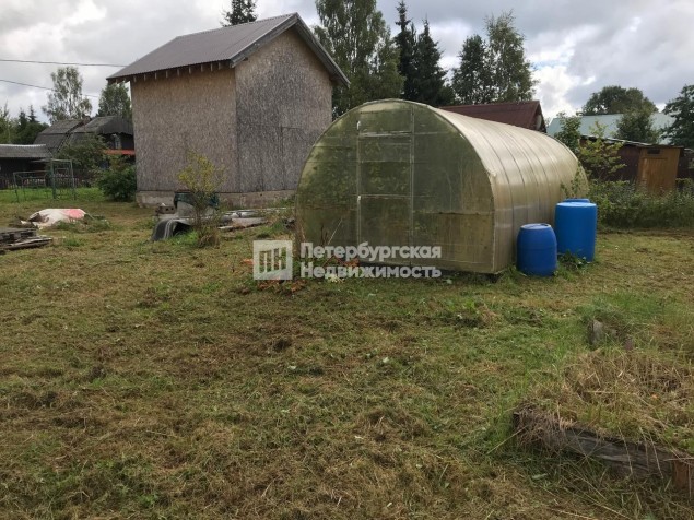 На участке находится недостроенный двухэтажный дом с ленточным фундаментом, огород, теплица, пруд и колодец, а также хозяйственные постройки. Подведено электричество мощностью 15 кВт с установленным электрическим щитом.